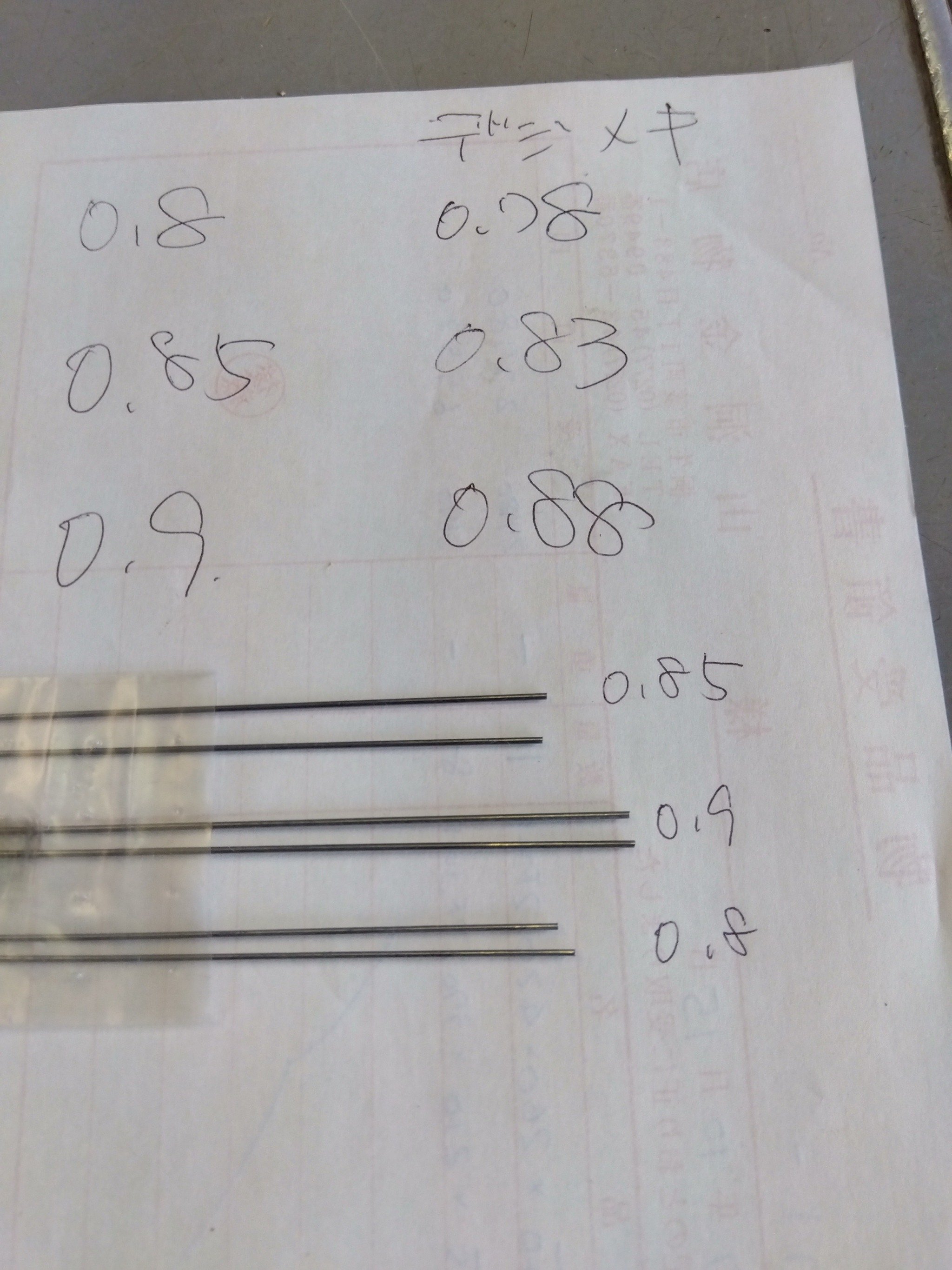 直径1mmの引張強さに匹敵する硬さは、HRC55程度。